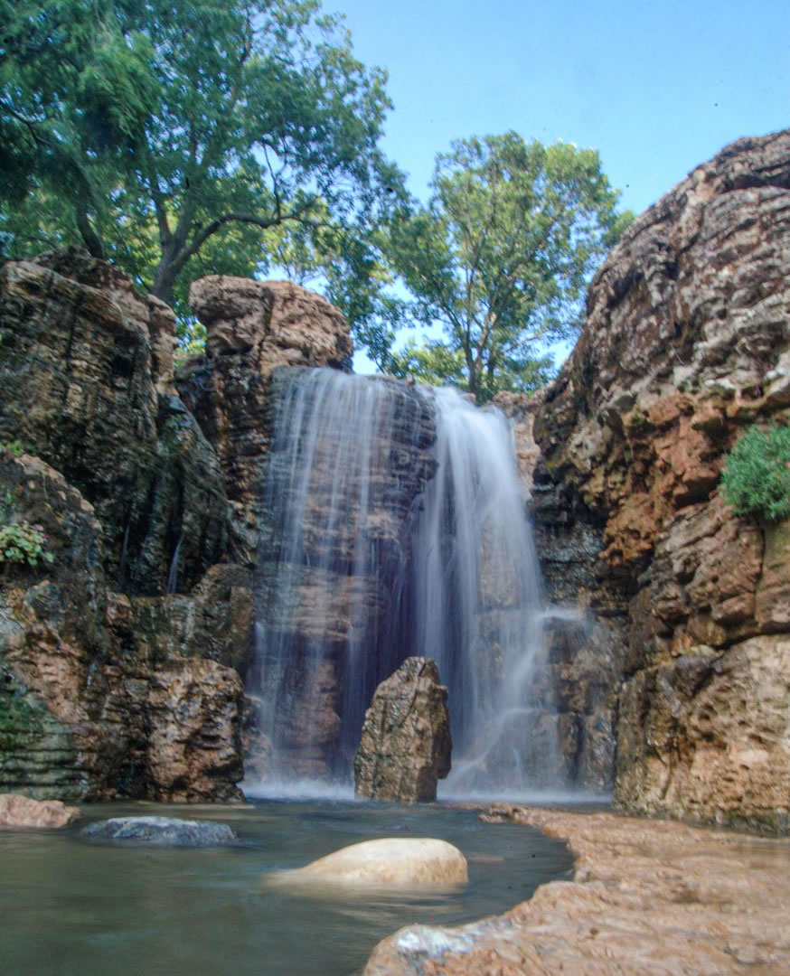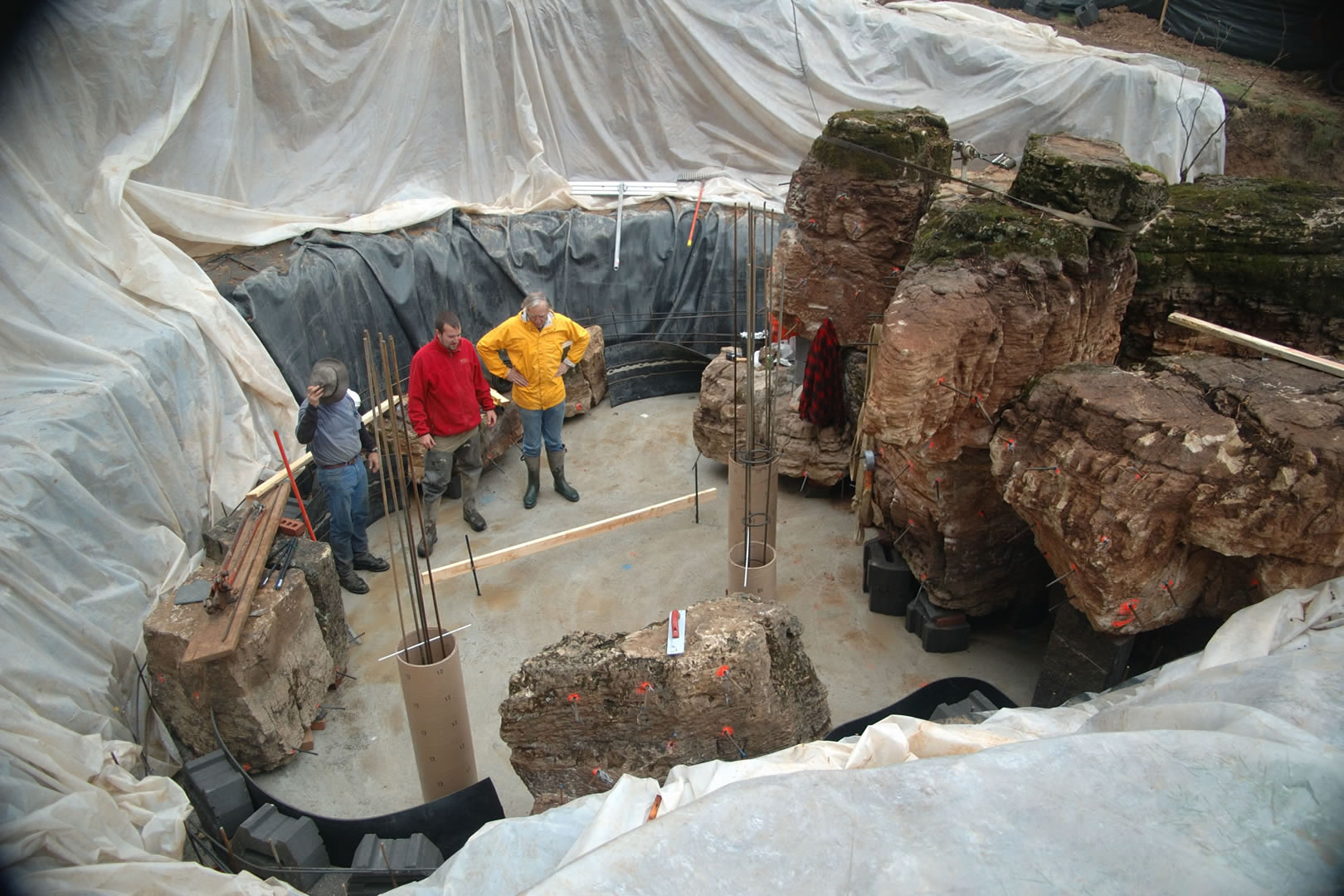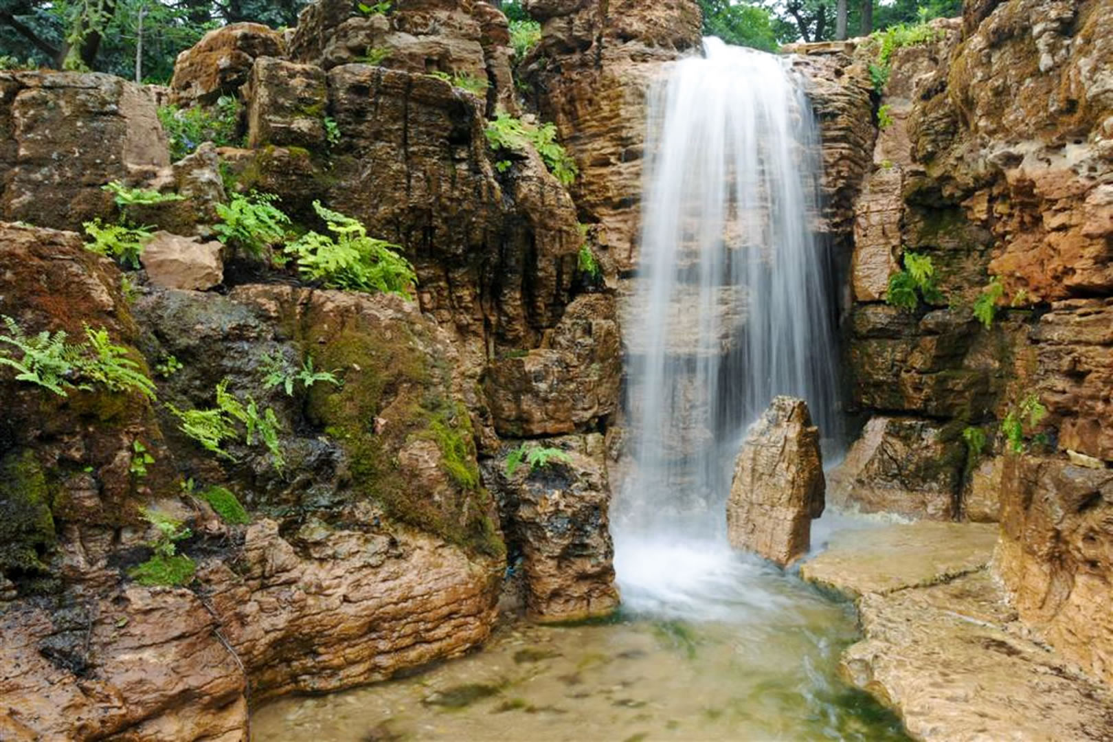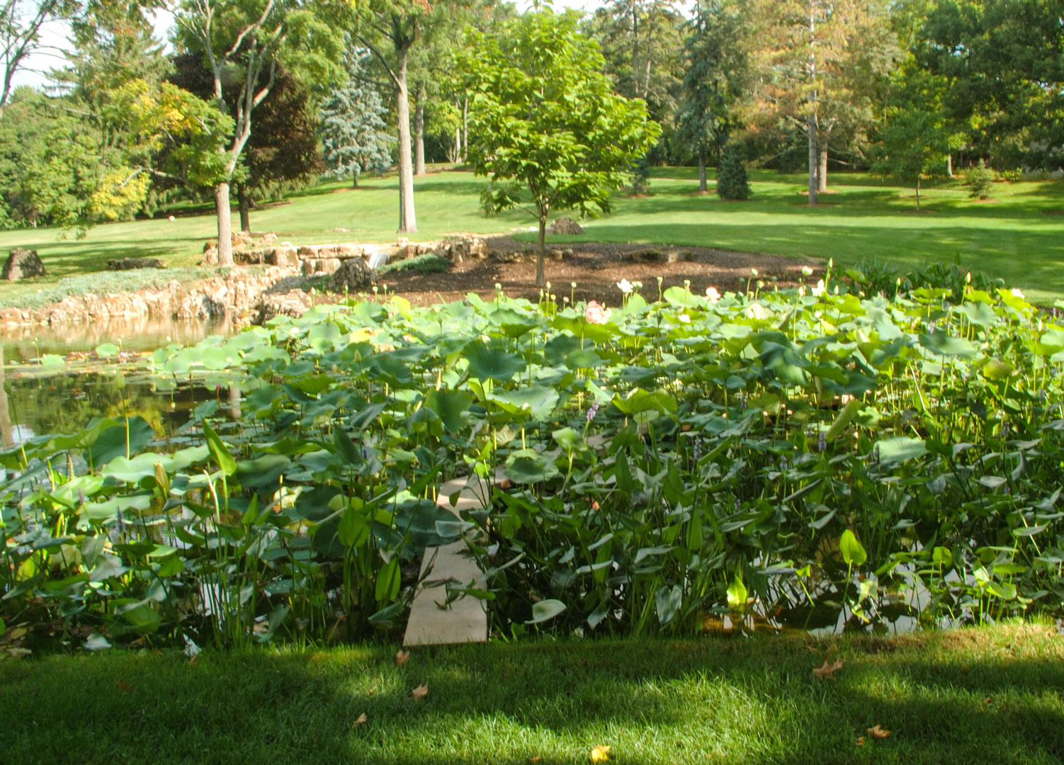 For this renovation of an historic Olmstead landscape, ACS and water garden designer Anthony Archer-Wills created a series of estate ponds, waterfalls and streams following the natural flow of the site. Behind all three waterfalls are grottos of various sizes, to be discovered by adventurous visitors to the property. The most dramatic of these grottos is situated behind the tallest waterfall and measures 22’ L x 12’ W x 9’ H, complete with stalactites and stalagmites.