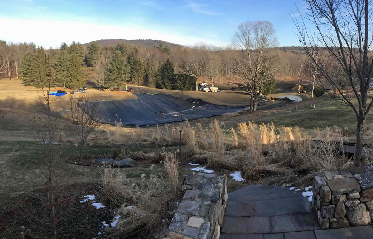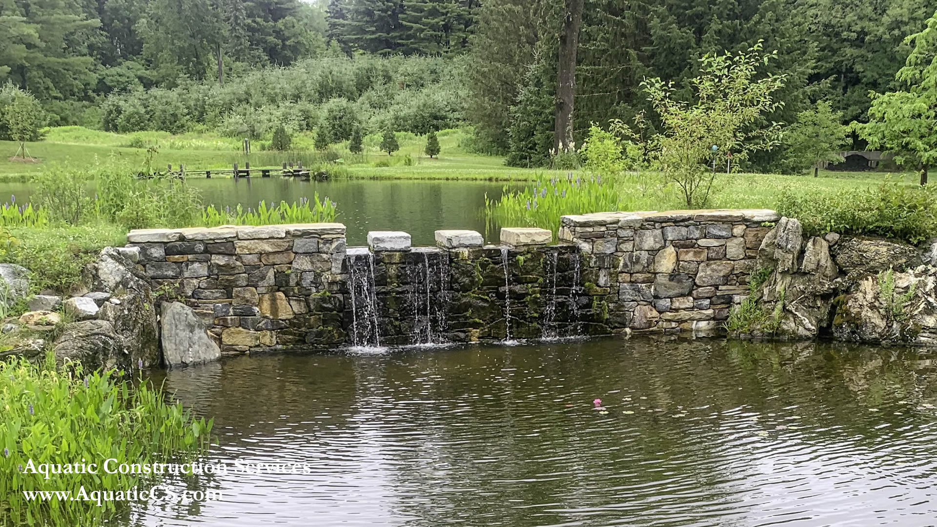 This 1-acre swim pond stocked with Trout and other game fish, is being naturally filtered via a 1/3-acre bio-filtration pond. Typical of these ponds, it was also plumbed to provide the local fire department with easy hook up and access to the water in the lake.