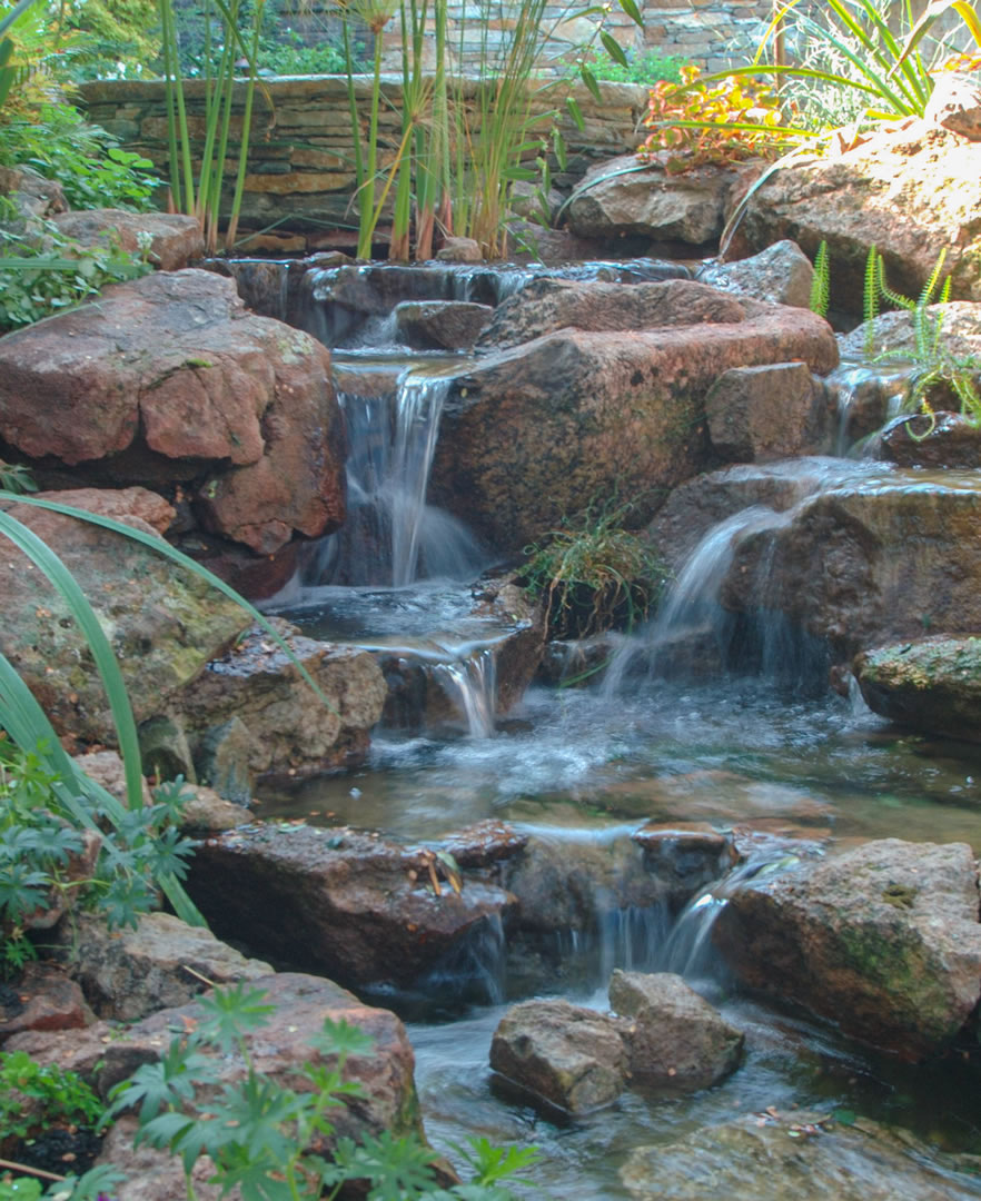 A pleasant sound of cascading water to sit near and read by was the goal for this homeowner’s water garden. In order to create that, nearly 50 small waterfalls were incorporated into a very small garden area. The waterfalls were tuned by ACS to successfully produce different volumes and pitches of melodic sound.